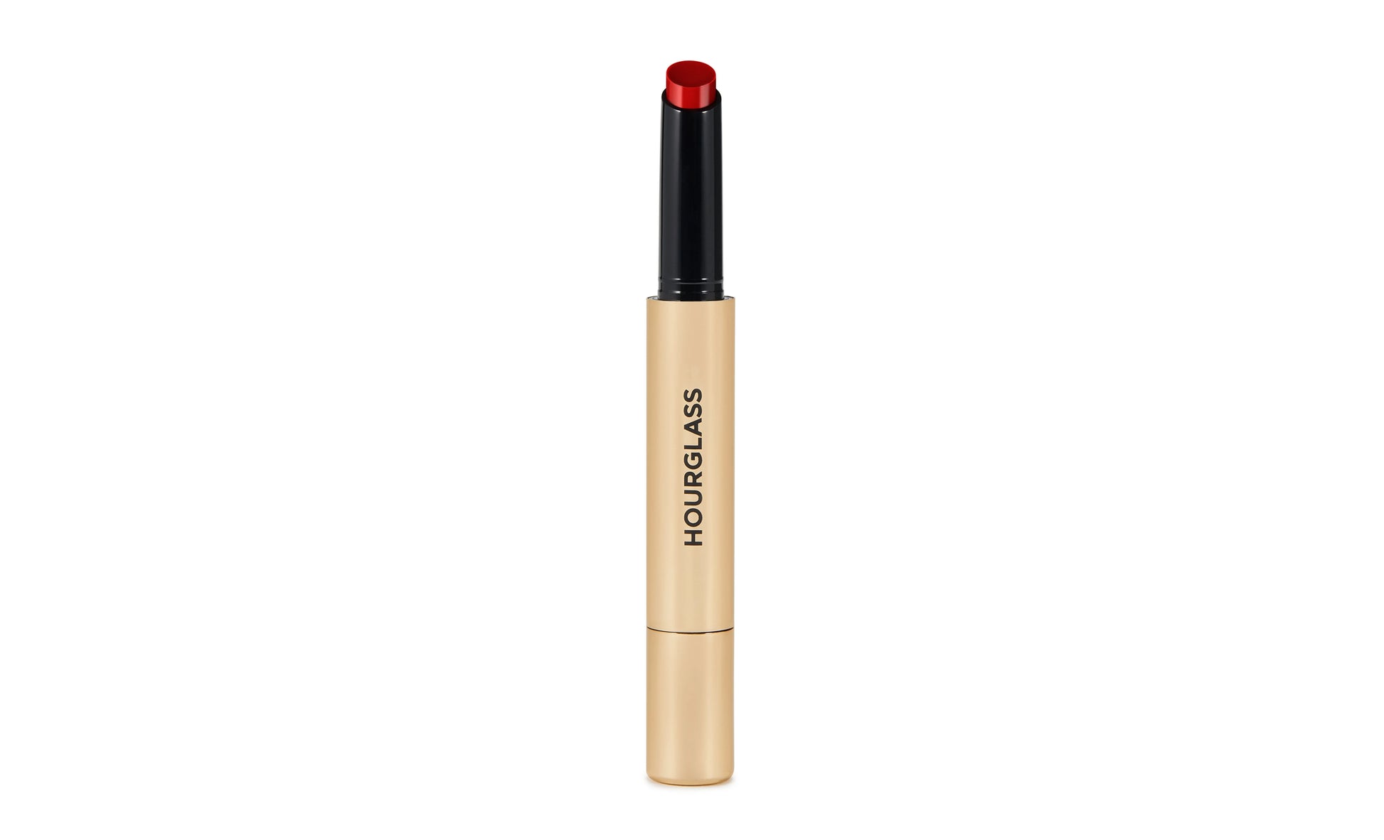 Hybrid 3-en-1 (bálsamo + gloss + color) que combina pigmento translúcido y alto brillo con un complejo acondicionador para hidratar, suavizar y dar volumen visible al labio sin sensación pegajosa. La fórmula incorpora menthyl lactate (sensación refrescante/efecto “cooling”) y un Conditioning Complex —mezcla de emolientes y aceites— que aporta confort y aspecto más relleno; Hourglass comunica acabado dewy, color construible y textura que “se funde” sobre el labio. (Revisado en ficha oficial y retailers).